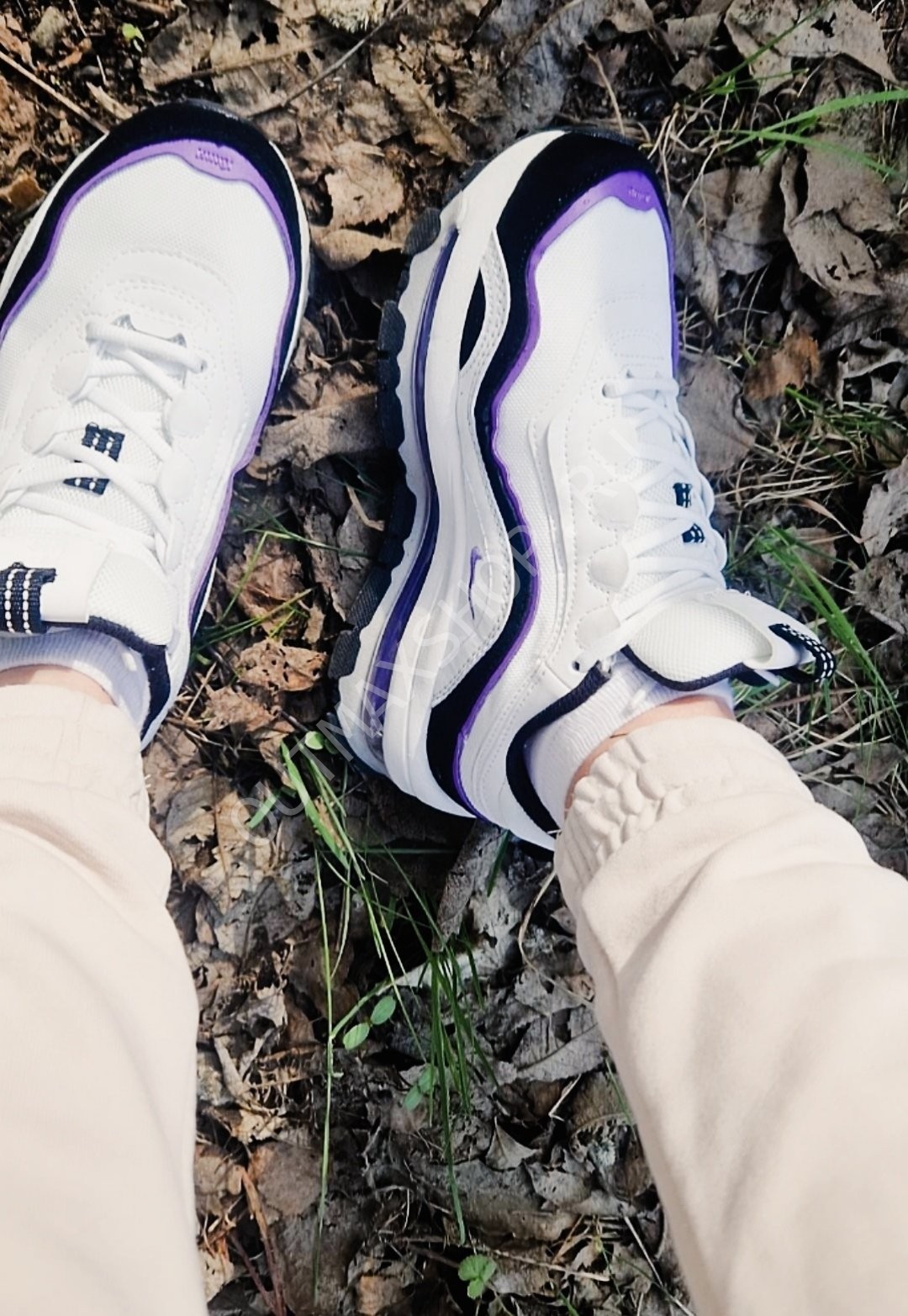 Прикольная деталь — на белой части тоже есть надписи, только видны они под определённым углом, как водяные знаки. Отличные кроссовки.